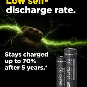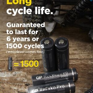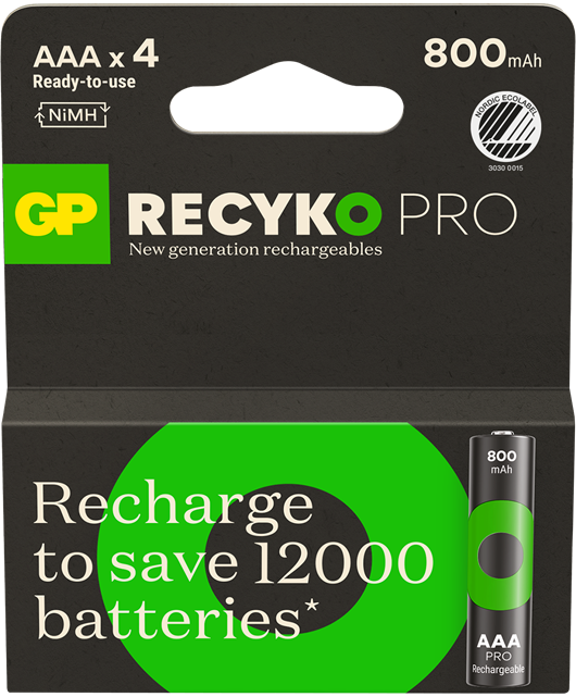 GP ReCyko Pro AAA -akku on joutsenmerkitty, korkean suorituskyvyn NiMH-ladattava paristosetti. Jopa 1500-kertainen käyttöikä tavallisiin akkuihin verrattuna tarkoittaa että ReCyko Pro -akut sopivat ihanteellisesti suuritehoisille laitteille. Esiladattu ja käyttövalmis akkusarja korvaa kertakäyttöiset paristot, ja säilyttää jopa 70% varauksestaan 60 kuukauden ajan alhaisen itsepurkautumisasteensa ansiosta.