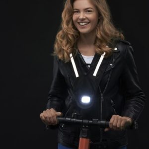 Heijastava Scoot-liivi päälläsi et varmasti jää huomaamattomaksi liikenteessä. Kävelylenkillä, sähköpotkulaudalla tai pyörällä liikkuessasi on tärkeää että autoilijat, muut motoristit ja kevyen liikenteen kulkijat näkevät sinut pimeälläkin. Liivin etupuolella loistaa valkoinen valo, takapuolella punainen. Heijastavat raidat loistavat vastaantulijan valoissa silloinkin, kun liivit valot ovat pois päältä.