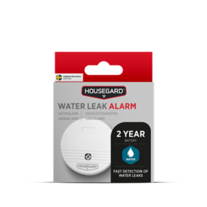 Vesivuotovaroitin – Housegard WA201S varoittaa nopeasti ja tehokkaasti vuotavista vesiputkista, pyykin- ja astianpesukoneista. Sopii käytettäväksi myös kylpyammeiden, vessojen sekä käsienpesualtaiden lähellä. Vesivuotovaroitin havaitsee vesivuodon ennen kuin se ehtii aiheuttamaan suurta vahinkoa. Hälytys tulee heti, kun vesi osuu hälyttimen pohjassa oleviin antureihin.