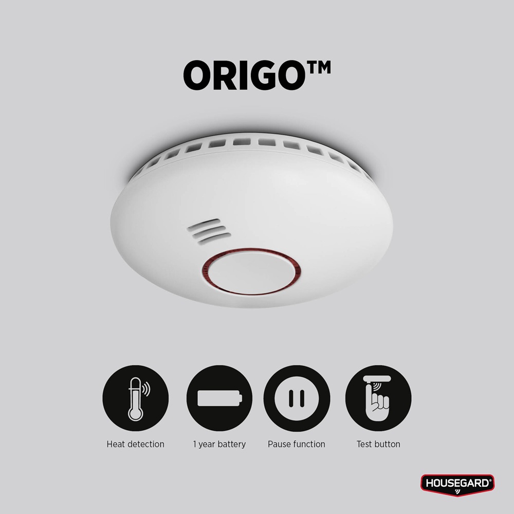 Housegardin Origo™ on savu- ja lämpötilavaroitin, joka kytkettävissä langattomasti sarjaan. Varoitin toimii kahdella AA-paristolla. Kun varoitin on yhdistetty muihin saman sarjan varoittimiin ja yksi palovaroitin havaitsee savua, lähettää se muille hälyttimille signaalin. Sisäänrakennettu paikallistamistoiminto kertoo, mistä varoittimesta hälytys on lauennut. Taukotoiminnon avulla koko järjestelmä voidaan väliaikaisesti vaimentaa, mikäli virhehälytyksiä esiintyy.