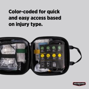 74-osainen ensiapulaukku pienten ja suurempien ruhjeiden, palovammojen sekä akuuttien hengitys- ja verenkierto-ongelmien hoitoon.