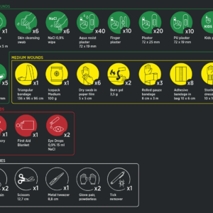 Kattava EA-pakkaus pienille ja suurille vammoille. 152-osainen setti.