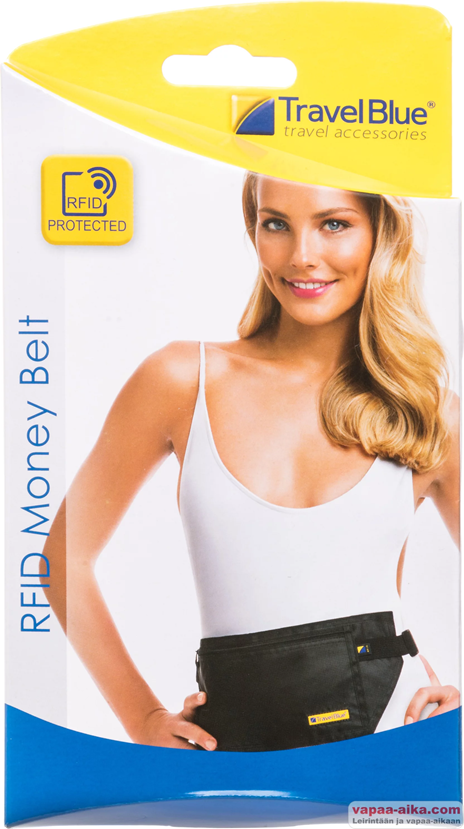 Avainsanat tuotteelle ID-varkaus, matkalle, rahavyö, RFID-suojaus, travelblue, vaatteiden alle, vyölaukku