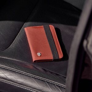 Passilompakossa on erilliset lokerot henkilökorteille ja maksukorteille. Elastinen kiinnitysnauha pitää lompakon tiukasti suljettuna. Helppokäyttöinen, RFID-suojattu passilompakko on saatavilla kahdessa värissä.
